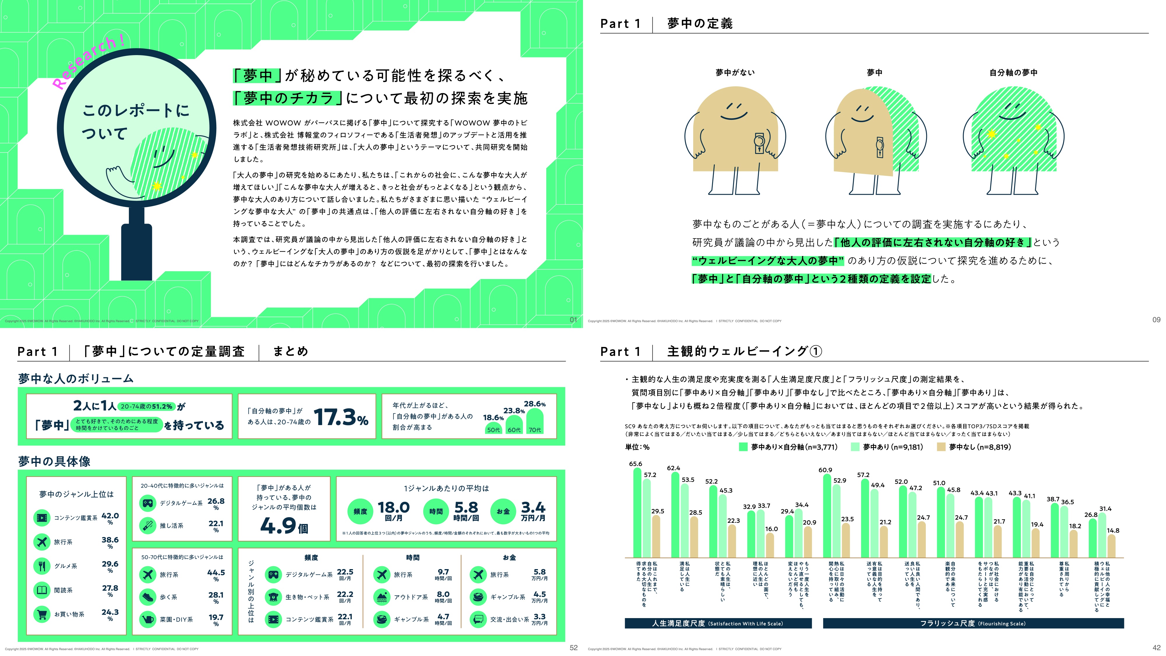 生活者発想のアップデートと活用を推進する生活者発想技術研究所と、「大人の夢中」についての探究を進めるWOWOW 夢中のトビラボは、夢中の実態や夢中が持つチカラについての共同研究を実施し、その成果として「夢中のチカラ 調査レポート vol. 1——ウェルビーイング向上の鍵! "夢中"の可能性をひもとく」を公開いたしました。
